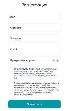 Для продолжения регистрации нужно дать согласие на обработку персональных данных и отметить флажок в соответствующем чекбоксе.