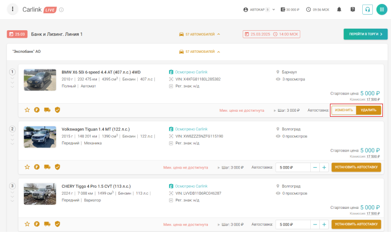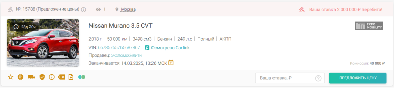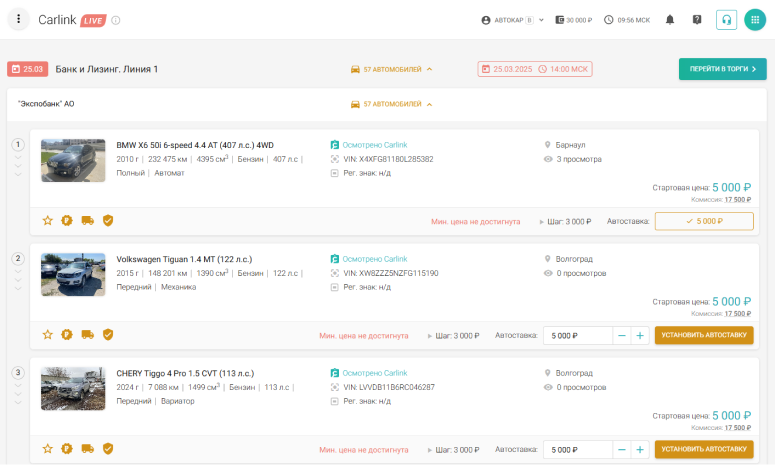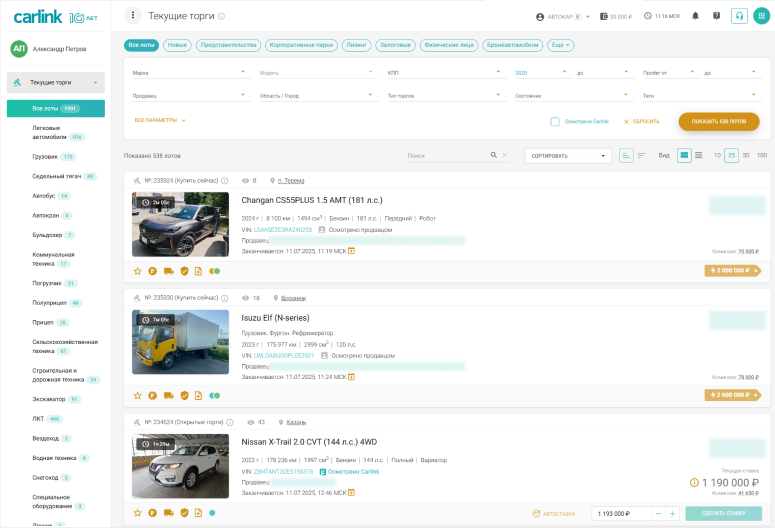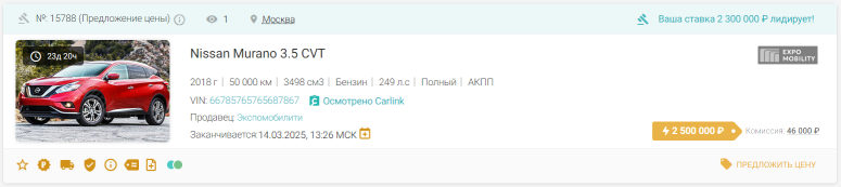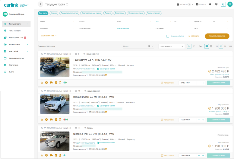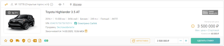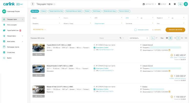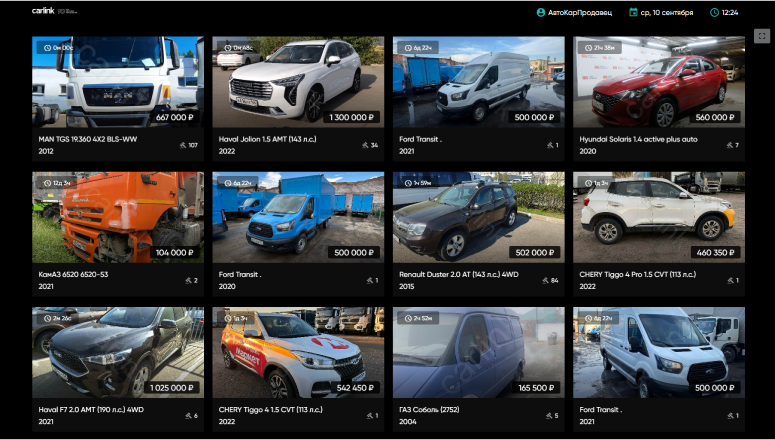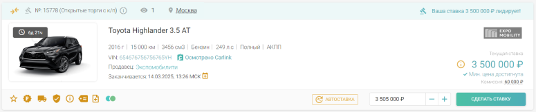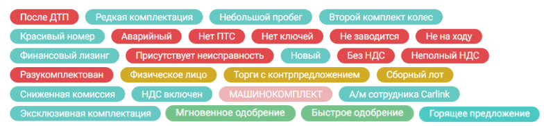 отмечены лоты автомобилей, которые есть в продаже только на площадке Carlink (рис.).