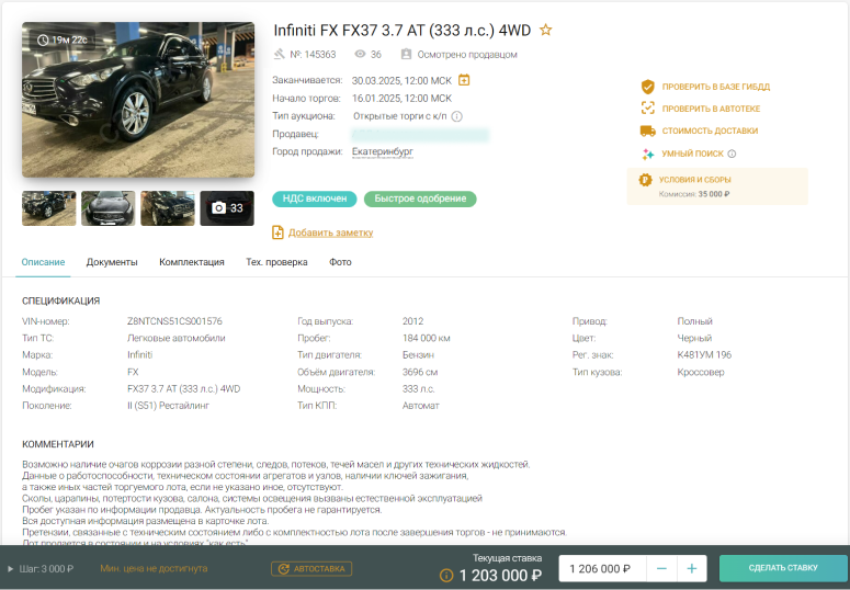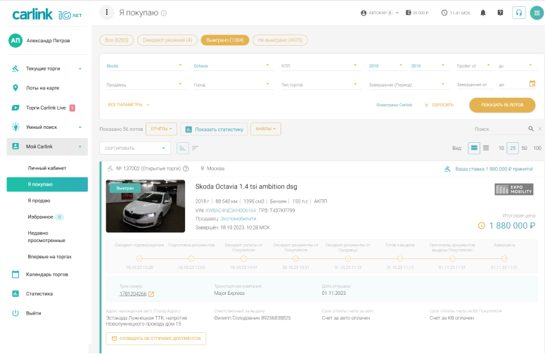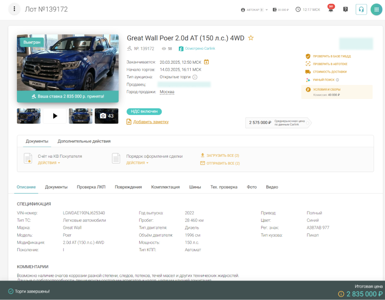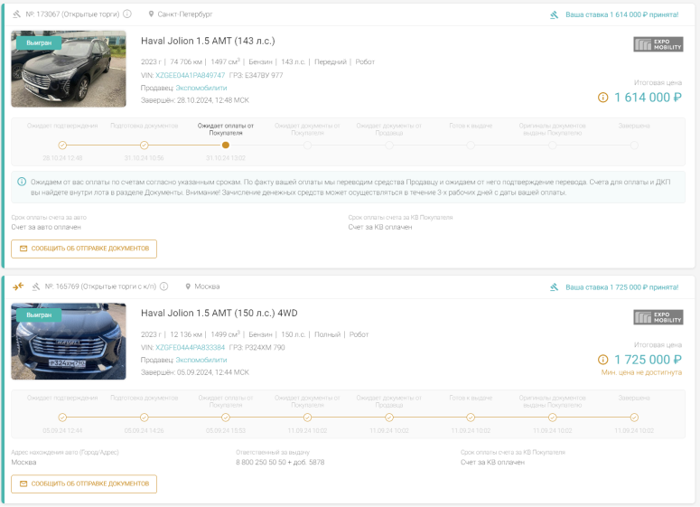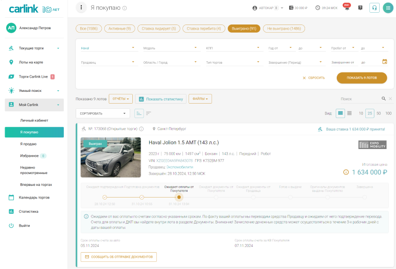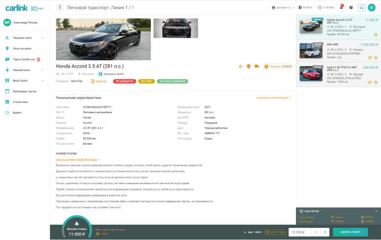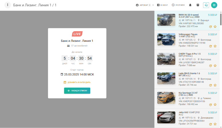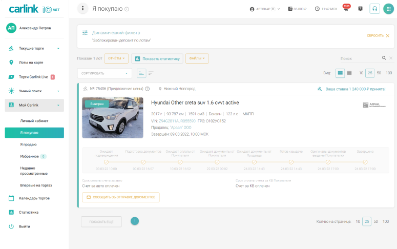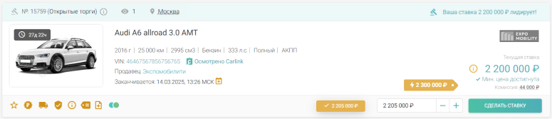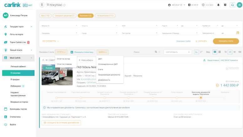 После того, как пройдена регистрация, создан профиль покупателя на ЭТП, заключен договор и внесен обеспечительный депозит, можно принимать участие в торгах на покупку автомобиля с полным доступом к информации платформы.