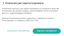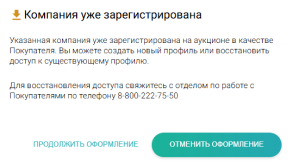 Если при регистрации профиля ЮЛ произошли совпадения по типу компании, ее наименованию или ИНН – вы получите предупреждение о наличии аналогичного профиля (дубля) (рис.).