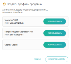 Если при регистрации профиля ИП произошли совпадения по типу компании, ее наименованию или ИНН – вы получите предупреждение о наличии аналогичного профиля (дубля) (рис.).