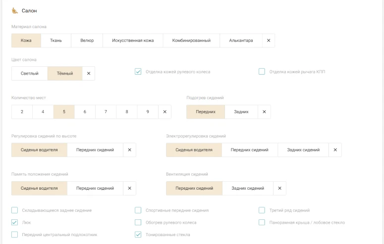 Для осуществления поиска автомобиля конкретной марки/модели (и других характеристик) можно использовать фильтр (рис.).