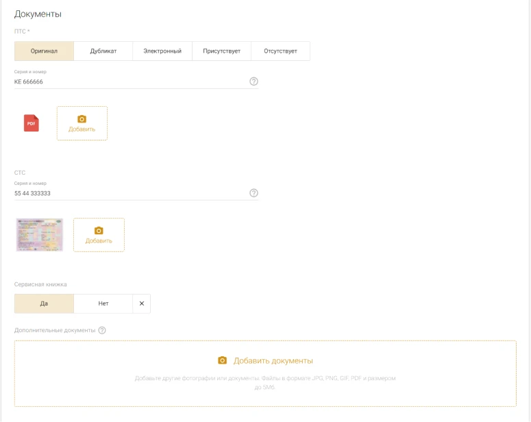 В «Условия и сборы» описаны основные условия продажи автомобиля и образцы договоров купли-продажи (рис.).
