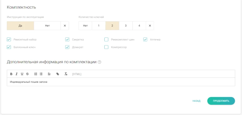 Поиск работает в полнотекстовом режиме, это означает, что можно искать по любому слову (или параметру), например, по VIN – «XW8ZZTR785СС34F24», или марке автомобиля «Audi», по типу топлива «Дизель», или по комплектации «Тонированные стекла».