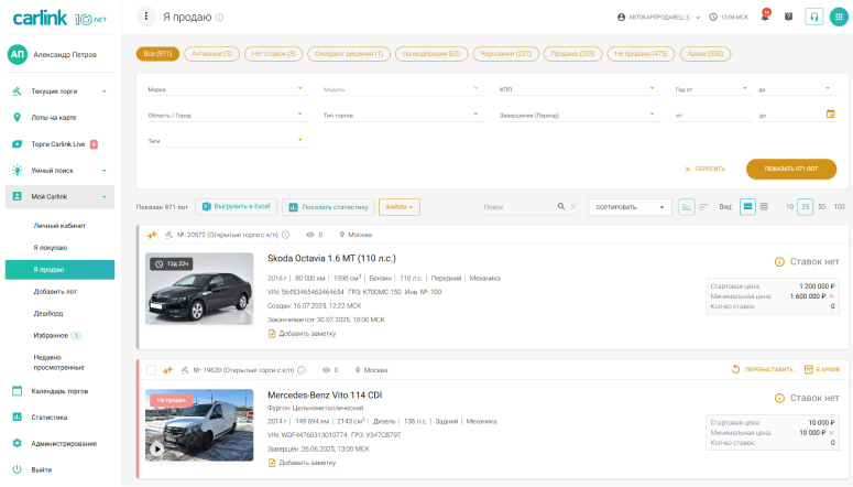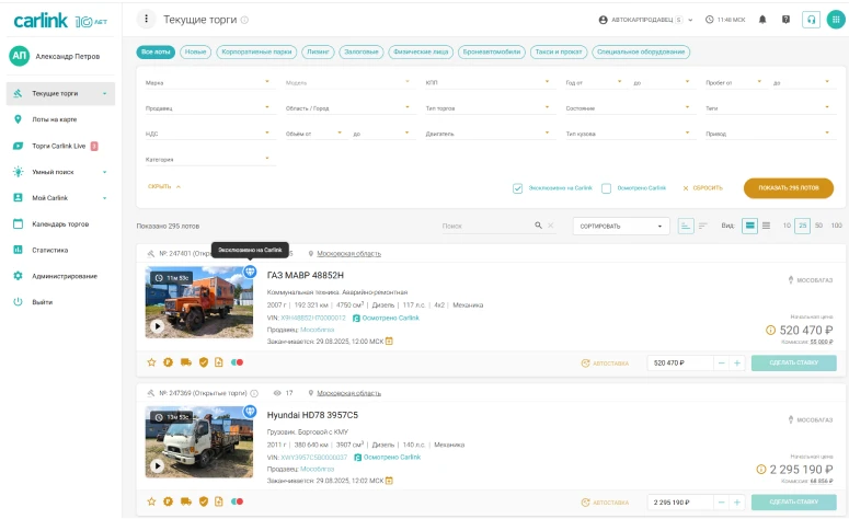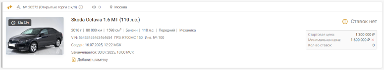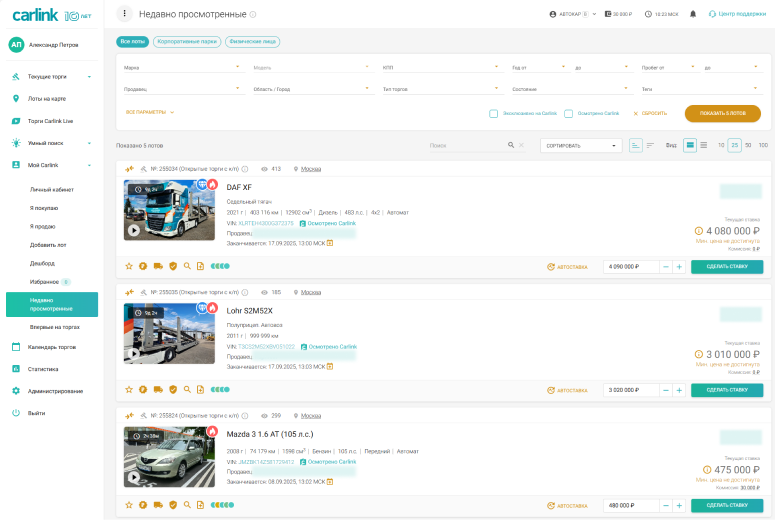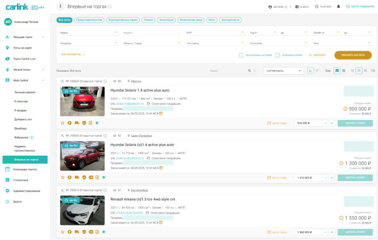 В разделе «Впервые на торгах» отображены лоты, которые впервые опубликованы на платформе Carlink.