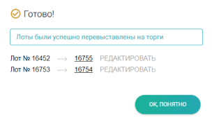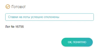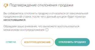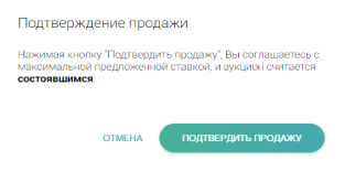 Ответ: После завершения торгов, в случае если Вы объявлены победителем, Вам необходимо ожидать подтверждения со стороны продавца. Продавец вправе отказаться от продажи без объяснения причин.