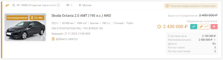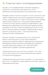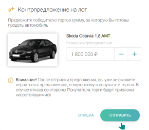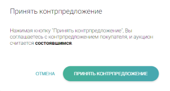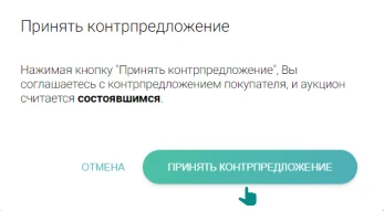 Продавец может отклонить результат торгов, принять его или сделать предложение покупателю, давшему максимальную ставку, на повышение его ставки. Покупатель в свою очередь также может согласиться с полученным предложением, отклонить его или сделать встречное предложение о цене. Возможность обмениваться встречными предложениями сохраняется 24 часа с момента завершения торгов по лоту. Если в течение указанного времени предложение не было принято ни одной из сторон - торги автоматически признаются несостоявшимися.