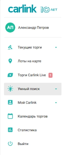 Посмотреть избранные вами лоты можно нажав соответствующий пункт в меню сайта в разделе «Мой Carlink» (рис.). Более подробное описание в разделе «Избранное».