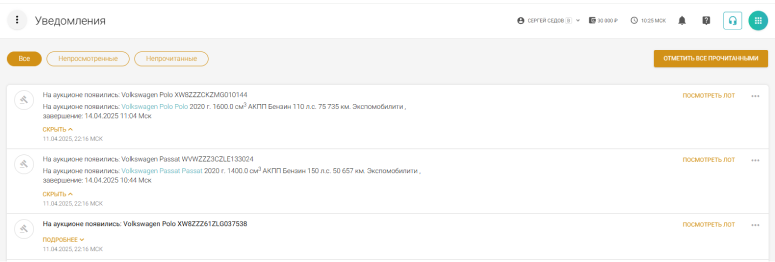 » добавляются столько уведомлений, сколько лотов по умному поиску появилось (рис.).