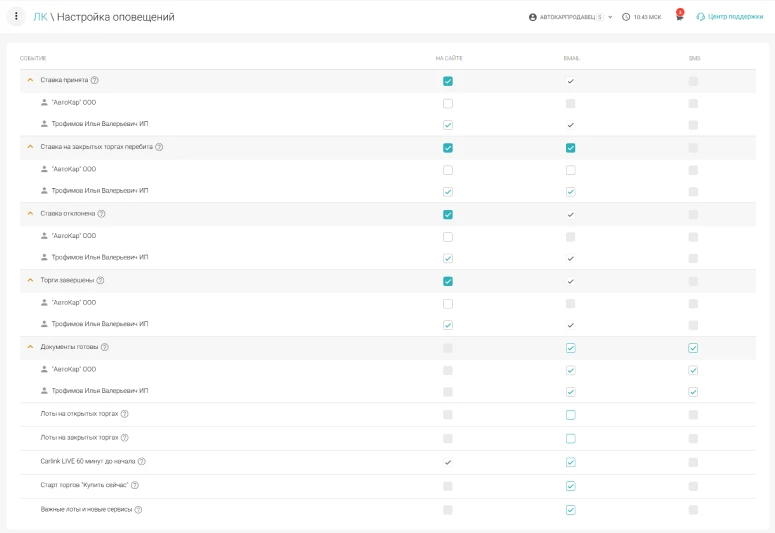 На ЭТП «Карлинк» имеется возможность настроить и запомнить для дальнейшего использования параметры фильтра, более того система будет оповещать вас о появлении на торгах лотов, удовлетворяющих критериям вашего фильтра.