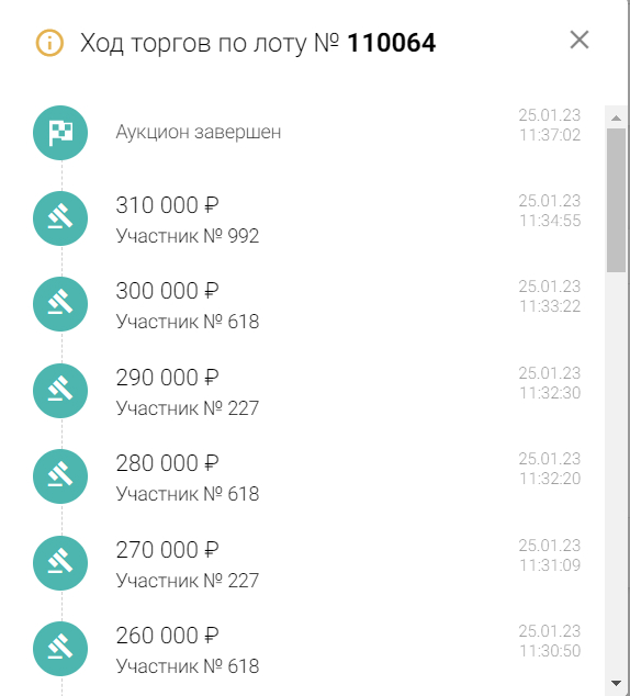 Дата окончания торгов – это время, после которого лот снимается с торгов и ставки больше невозможны.