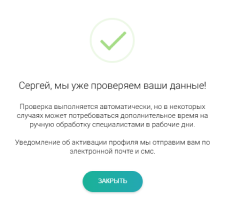 Вы увидите на экране сообщение об успешном формировании договора и ожидании проверки (рис.).
