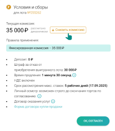 Правила отображения текущей комиссии и правил применения зависят от типа торгов на лоте.