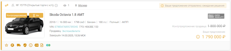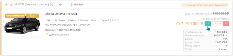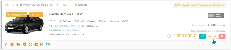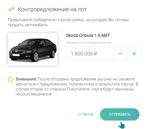 Аукцион с контрпредложением позволяет продавцу и покупателю, сделавшему максимальную ставку, обмениваться предложениями после завершения торгов.