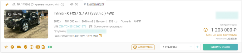 Цена «Купить сейчас» – сумма, по которой Продавец готов продать лот моментально, без торгов.
