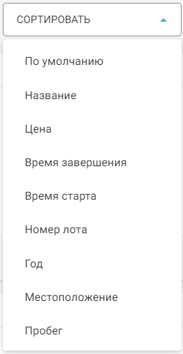 В остальных видах сортировки (по названию, цене, времени завершения, времени старта, номеру лота, году, местоположению, пробегу) можно сортировать по возрастанию